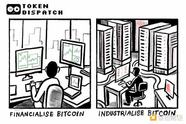塞勒的公司发行债券,然后用筹集的资金购买比特币,囤积起来,就像央行囤积黄金一样。蒂尔的能源公司则游走于两个领域——它像开采其他商品一样开采比特币,但用计算机代替了传统的采矿设备;然后,它像Strategy公司那样,从市场上购买更多比特币。
