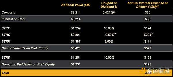 总体而言,可转换债券和股权的成本需要 Strategy 每年支付约 6.89 亿美元的利息和股息。