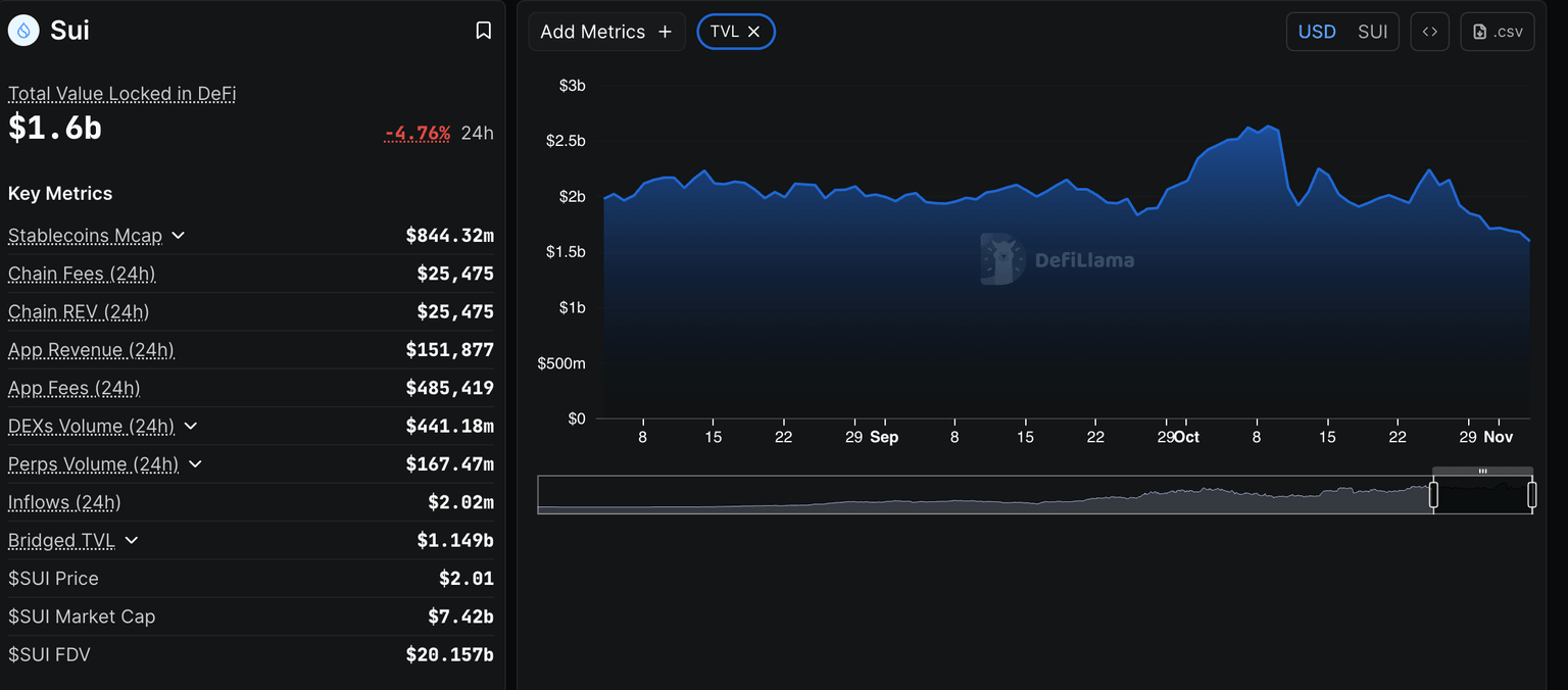 投资者正逐步减少对风险较高资产的投资,包括Sui代币。根据去中心化金融(DeFi)生态系统中Sui代币的总锁定价值(TVL)数据,过去24小时内,其质押余额下降了4.76%,至16亿美元。