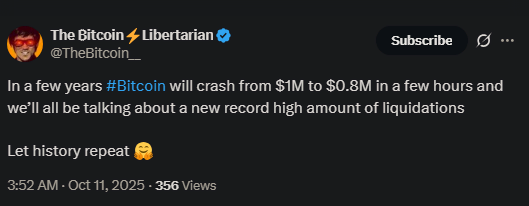 相反,这只是一个购买更多比特币的机会。比特币自由主义者暗示说,几年后,当比特币从 100 万美元暴跌至 80 万美元。