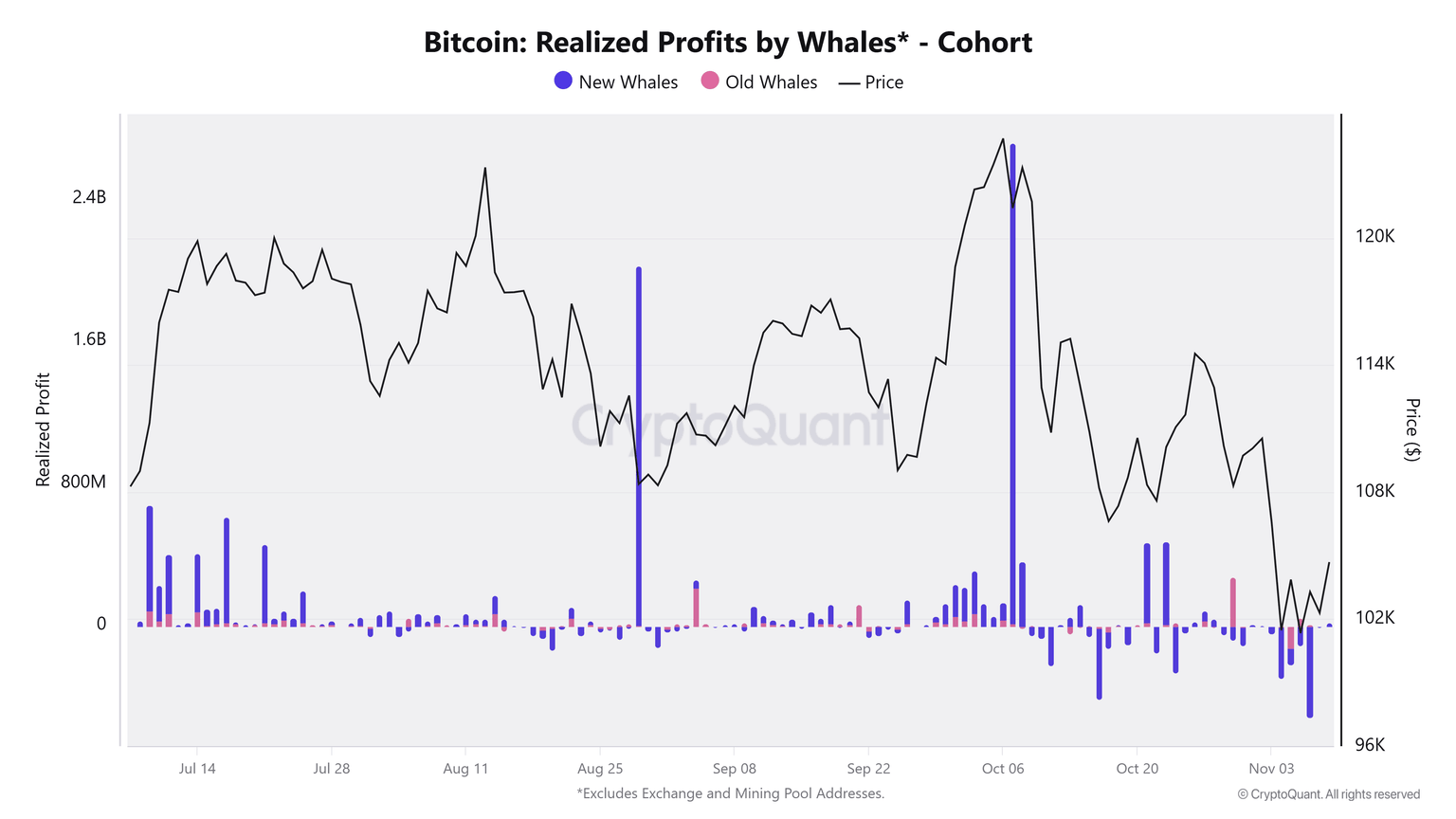 由于价格未能维持在11万美元的平均成本价之上,这批投资者加大了抛售力度,导致巨额亏损。11月4日至9日期间,新加入的巨鲸投资者损失超过13亿美元。CryptoQuant分析师MorenoDV在周日的一份报告中指出,这是2025年以来最激烈的抛售潮之一。