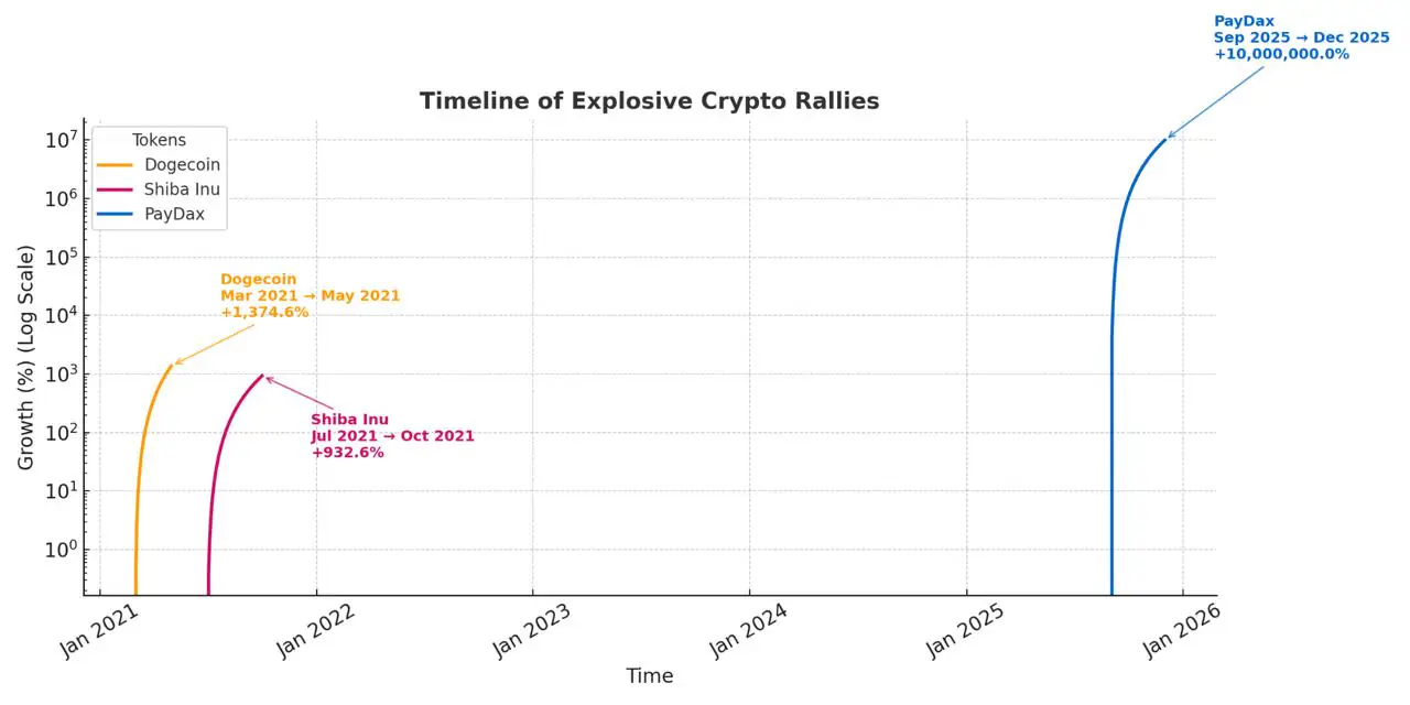 这些并非随机猜测;它们基于对基本面、时机和市场心理交汇点的精准把握。如果以史为鉴,那么曾经让狗狗币(DOGE)和柴犬币(SHIB)的信徒致富的信誉,如今正汇聚到这款山寨币上。PayDax (PDP).