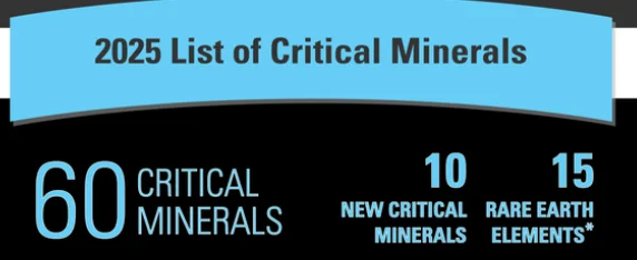 在最新的清单中,关键矿产数量增至60种,其中包含15种稀土元素。