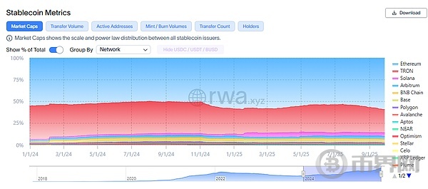 从公链分布来看,Tron链的稳定币份额遭遇了显著下滑,考虑到未来USDT和Plasma的紧密关系(USDT专属公链要发币!稳定币公链战役开启),Tron还有很大的下降空间。