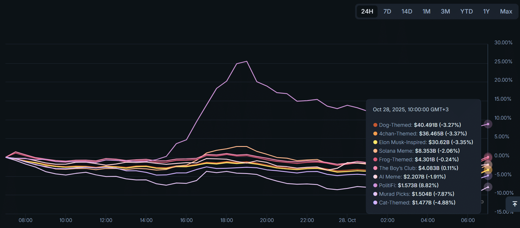 尽管 PolitiFi 出现反弹,但 memecoin 市场依然保持低迷。