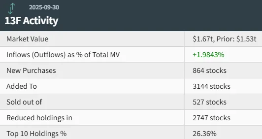 根据美国证券交易委员会(SEC)披露,摩根大通递交了截至2025年9月30日的第三季度持仓报告(13F)。