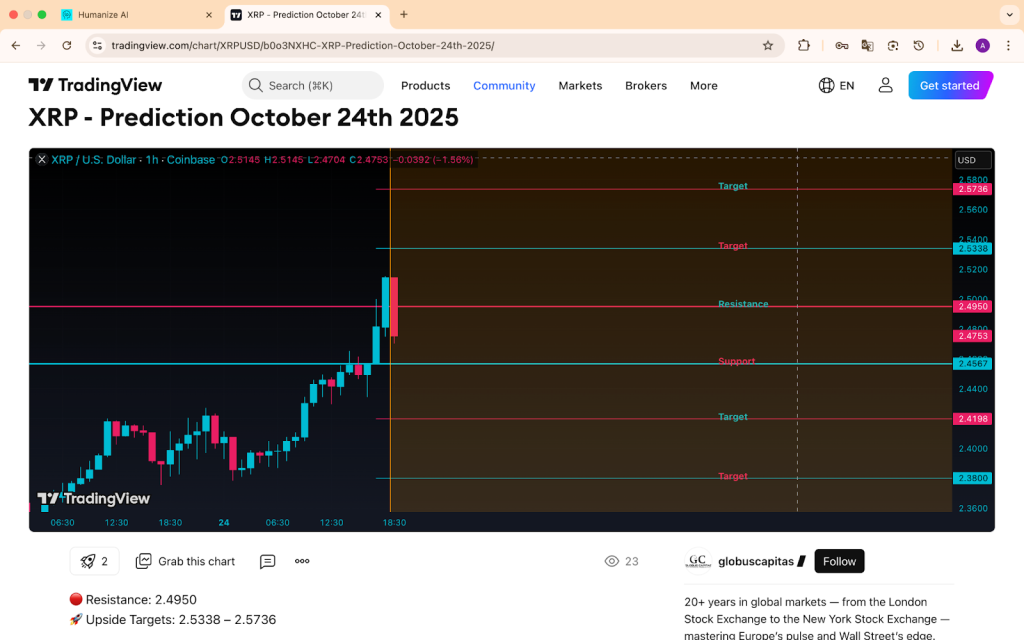 对10月25日至31日XRP价格的预测依然乐观。如果XRP能够守住2.40美元,那么到月底它可能会回升至2.48美元至2.50美元区间。然而,如果价格彻底跌破该区域,则可能引发新一轮抛售。总体而言,交易员们认为目前处于观望状态——在下一次重大行情到来之前,价格会经历一段盘整期。