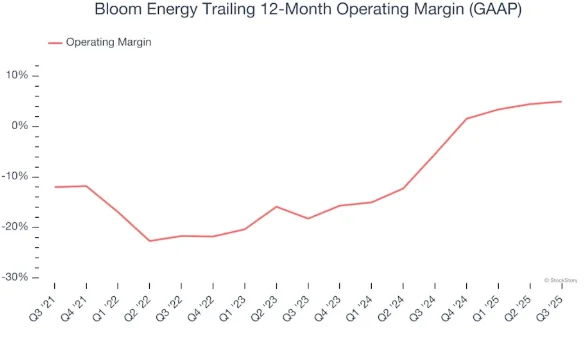 在第三季度,$Bloom Energy (BE.US)$的营业利润率达到了 1.5%,较去年同期增长了 4.4 个百分点。由于其毛利率的增长幅度超过了营业利润率的增长幅度,因此可以推断,其销售成本的杠杆作用是近期效率提升的主要原因。
