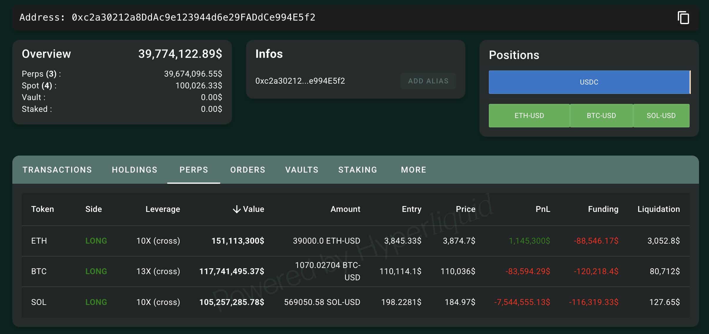 即使资金仍然为负,市场情绪仍然谨慎,他们目前仍持有价值 1.51 亿美元的 39,000 个 ETH 多头头寸(10 倍杠杆)。