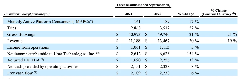三季度亮点来自Delivery业务调整后EBITDA激增47%至9.21亿美元,远超Mobility业务21%的增速。这一差异反映出外卖业务的规模效应开始显现,但同时也暴露出Uber对单一增长引擎的依赖度正在上升。