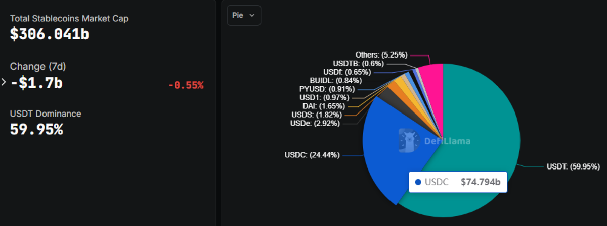 总市值约750亿美元截至发稿时,USDC是全球第二大稳定币,仅次于……Tether 的 USDT约占稳定币市场份额的 25%。