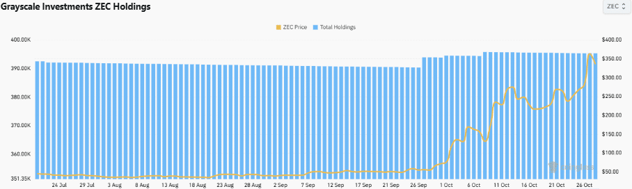根据 CoinGlass数据截至撰写本文时,Grayscale Zcash Trust 仍持有近 40 万 ZEC,价值 1.325 亿美元。