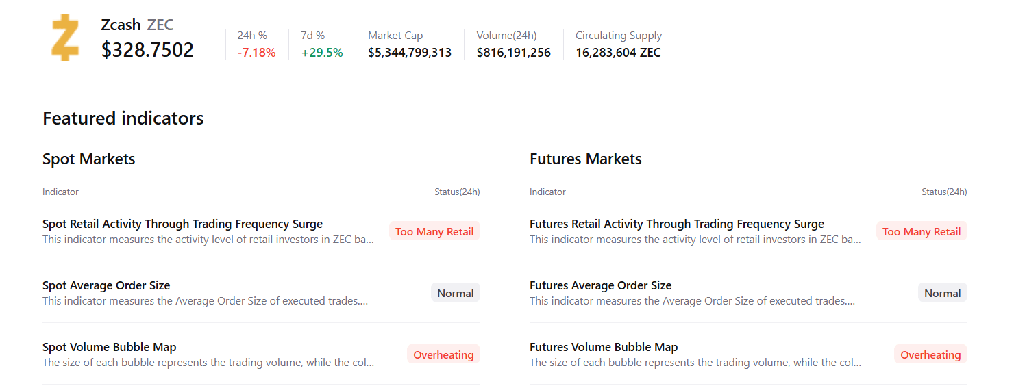 截至周二撰写本文时,Zcash (ZEC) 价格跌破 330 美元,在本周早些时候大幅上涨后,显示出降温的初步迹象。专注于隐私的加密货币链上数据显示,散户活动有所增加,这一趋势通常与短期市场触顶有关。除了这种看跌前景外,技术指标也显示出看跌背离,表明动能正在减弱,并可能在短期内出现回调。