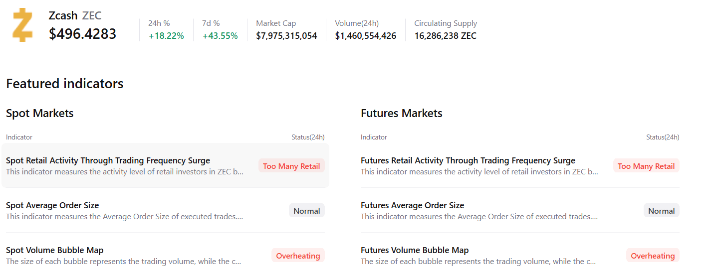 尽管ZEC前景看好,但CryptoQuant的汇总数据显示,一些迹象值得关注。现货和期货市场均出现散户交易活动可能过热的迹象。