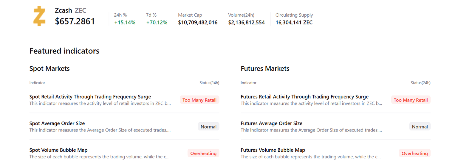 尽管看涨前景根据 CryptoQuant 的汇总数据,ZEC 的一些走势令人担忧。现货市场和期货市场均显示出散户交易活动可能过热的迹象。