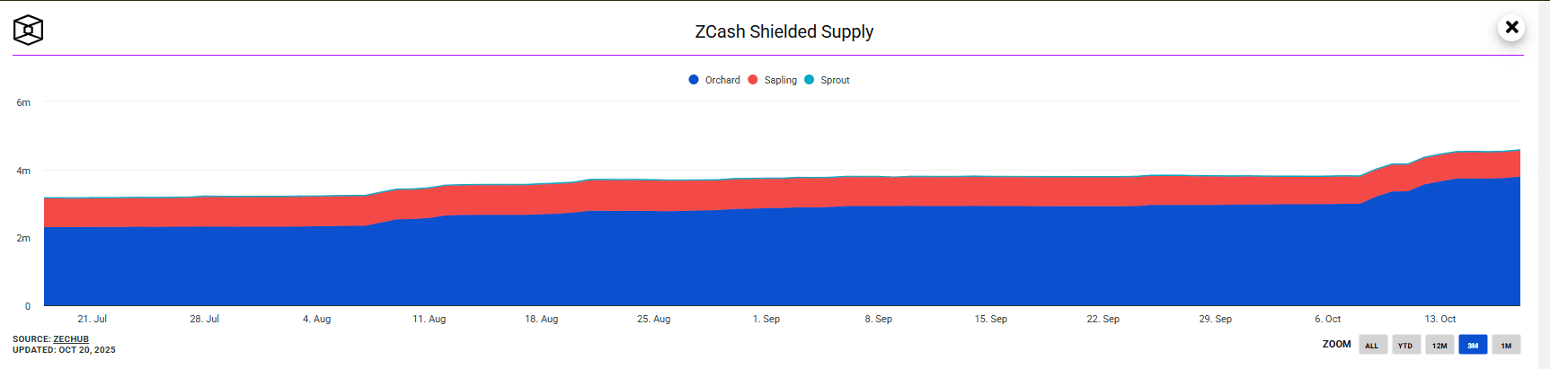 截至11月初,分布在果园、幼苗和萌芽池中的受保护ZEC供应量接近500万份。而截至8月初,仅有320万份ZEC受到保护。