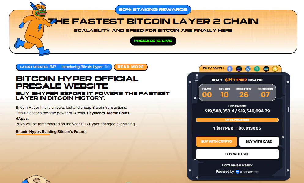 比特币超级 ($HYPER)是即将推出的比特币超级网络的原生代币,这是一个 Layer 2 解决方案,旨在带来即时、近乎零成本且可扩展的智能合约