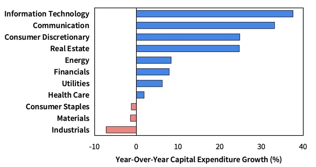 今天这幅画是什么样子的?为了建立直觉,让我们首先检查一下过去一年哪些行业的资本支出增长最大。
