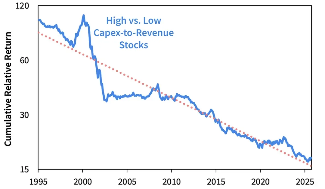 此前,我们发现资本基础快速增长的公司往往表现不佳。我们现在了解到,所有资本密集型公司——不仅是那些投资于增长的公司,还包括那些仅仅在维护上花费的公司——往往表现落后于轻资产同行。