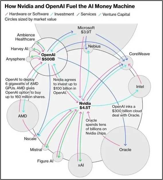 值得注意的是,OpenAI与英伟达、AMD之间的交易,本质上是一种“资金自循环”:用英伟达的投资,购买英伟达的GPU。