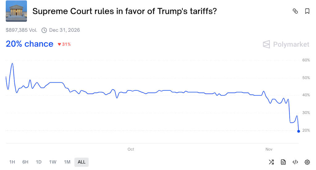 宝利市场博彩公司认为,总统的《国际紧急经济权力法案》(IEEPA)关税有80%的概率会被认定为违宪。如果关税被撤销,通胀率可能会下降,从而为美联储降息提供空间。缴纳关税的纳税人甚至有可能获得900亿美元的退款。如果我们降息,赤字却更大,那又会发生什么呢?和人工智能资本支出热潮?泡沫或许才刚刚开始。