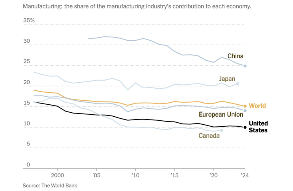 斯科特·林西科姆指出自 2010 年以来,中国的“去工业化”程度超过了美国自 20 世纪 90 年代中期以来的程度。